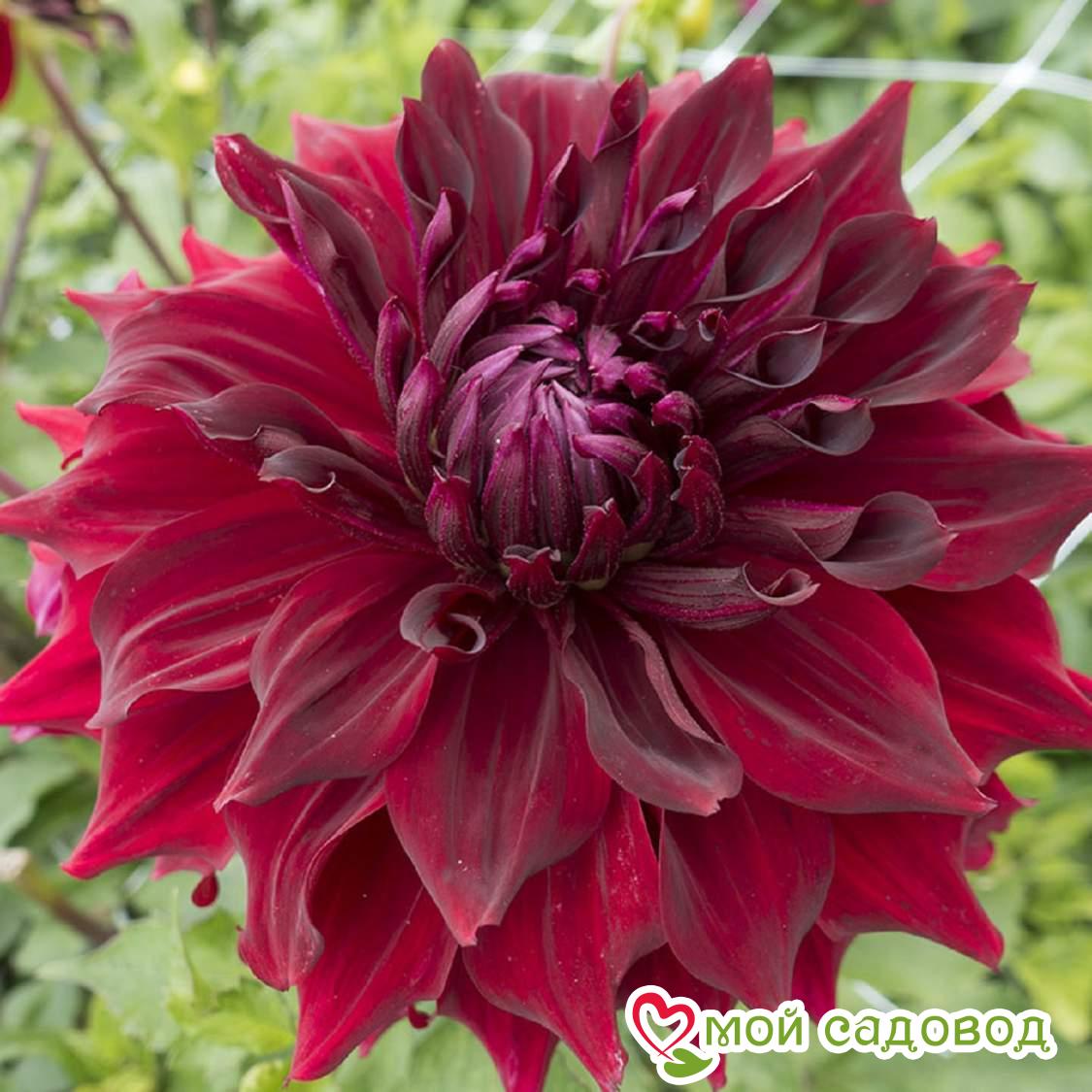 Георгины обычно достигают высоты 90 – 120 см. У этого сорта прочные и прямостоячие стебли. Они обычно достаточно жесткие, чтобы держать цветы вертикально. Листья зеленого цвета, плотные, размером 10 – 15 см. Цветы крупные и очень яркие, уникальной формы. Обычно они имеют махровую или полумахровую структуру с множеством слоев плотных лепестков, образуя шарообразные соцветия. Лепестки могут быть изогнутыми или волнистыми. Окрас – темно-красный. Цветение длится до осени.