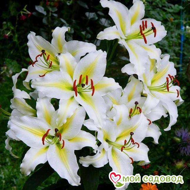 Читать далееОТ-гибриды (лилейные деревья) – это гибриды, полученные в результате скрещивания восточных гибридов с трубчатыми лилиями. Ценятся за свою необычайную красоту, обильное цветение (на одном цветоносе может располагаться до 40 цветков), прочность стеблей и необычайно высокий рост. Цветки могут быть как кубковидными, так и пониклыми. Обладают ярко выраженным ароматом, зацветают раньше других сортов.